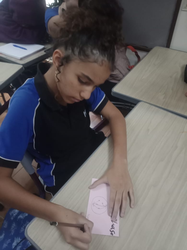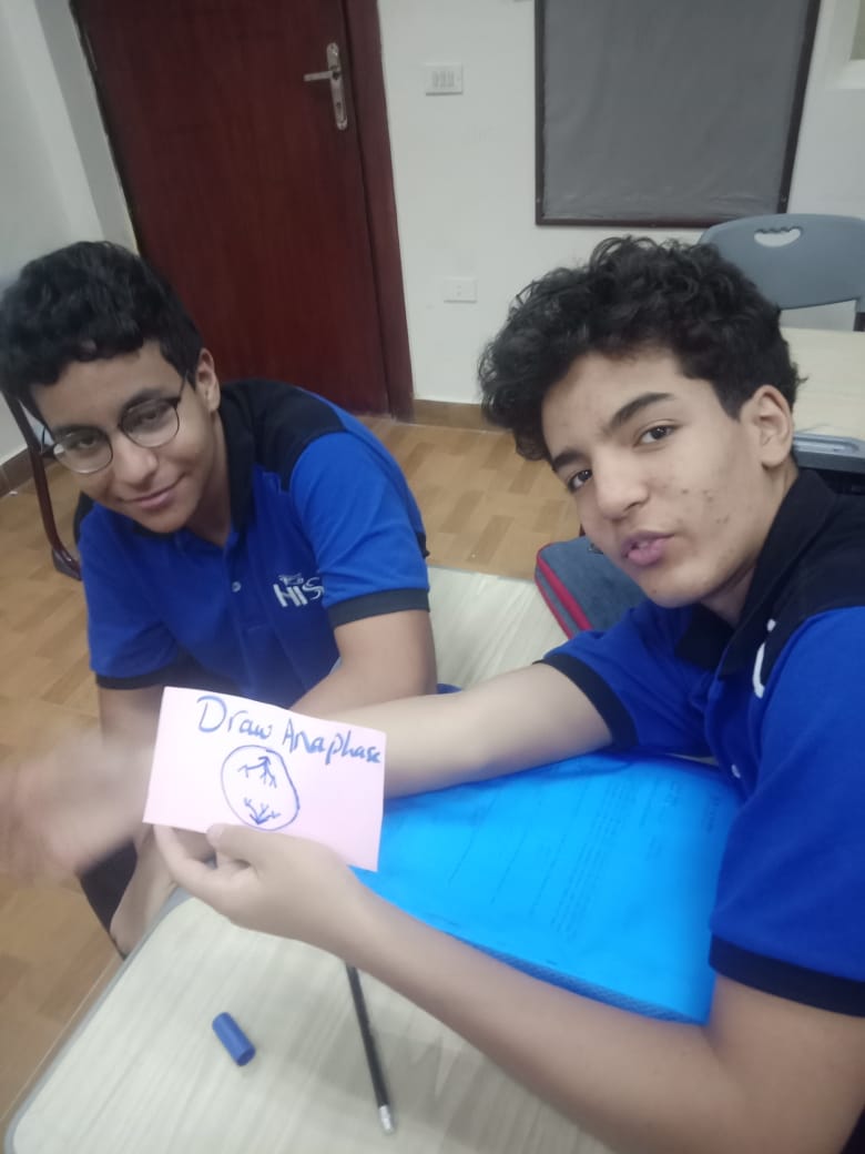 Illustrating the Phases of Mitosis through drawing them. Students were assigned random card, where each card had a different phase of the process.